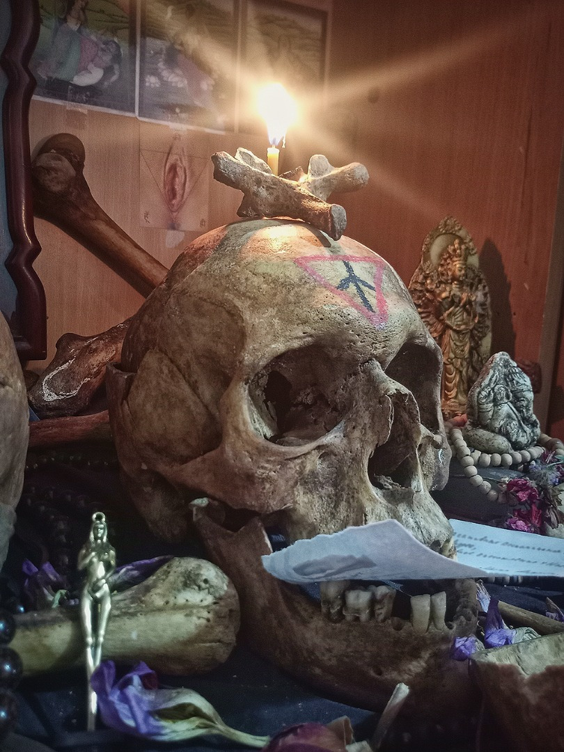 Мой храм, помимо места, где я почитаю Богиню Кали, уже давно стал для меня местом моих магических ритуалов. Энергетика тут уже сформировалась соответствующая - пропитанная медитацией и пронизанная мантрами. Богиня Кали в этом месте присутствует всегда. Она Шакти этого места. Все мои магические ритуалы, так или иначе, проходят через моих деват (Богов храма) - Кали, Пратьянгиру, Уччишта Ганапати и Йони-Шакти.